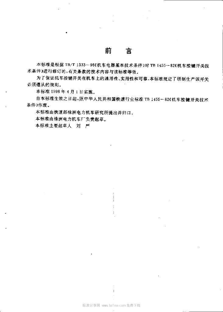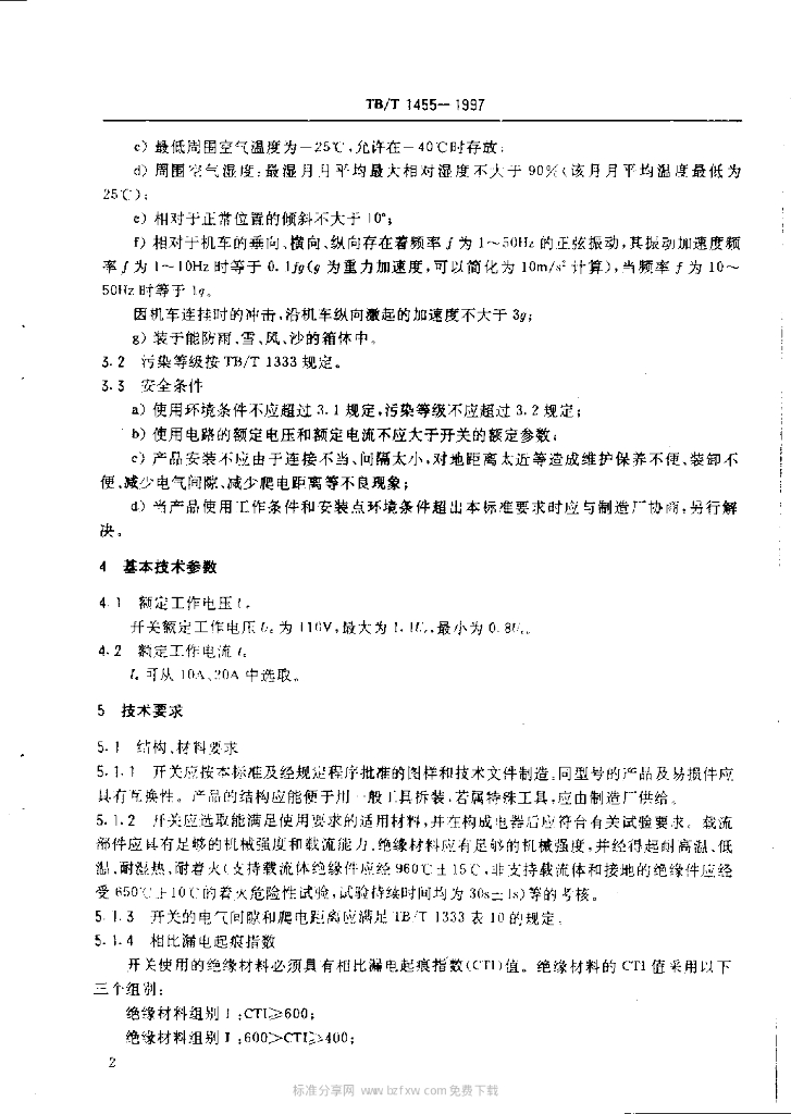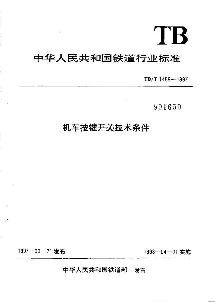 TB/T 1455-1997 机车按键开关技术条件