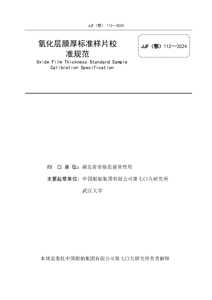 JJF(鄂)112-2024 氧化层膜厚标准样片校准规范