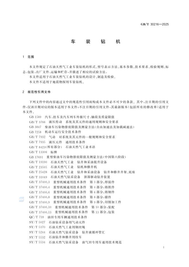 GB/T 30216-2025 车装钻机