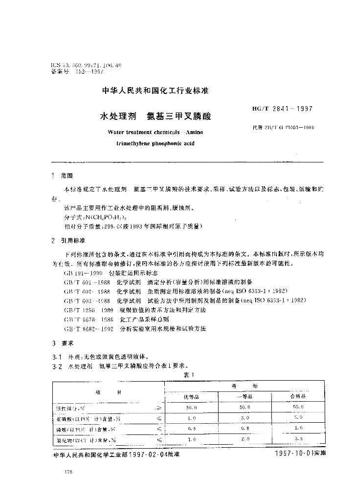 HG/T 2841-1997 水处理剂 氨基三甲叉膦酸