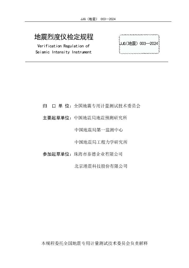 JJG(地震) 003-2024 地震烈度仪检定规程