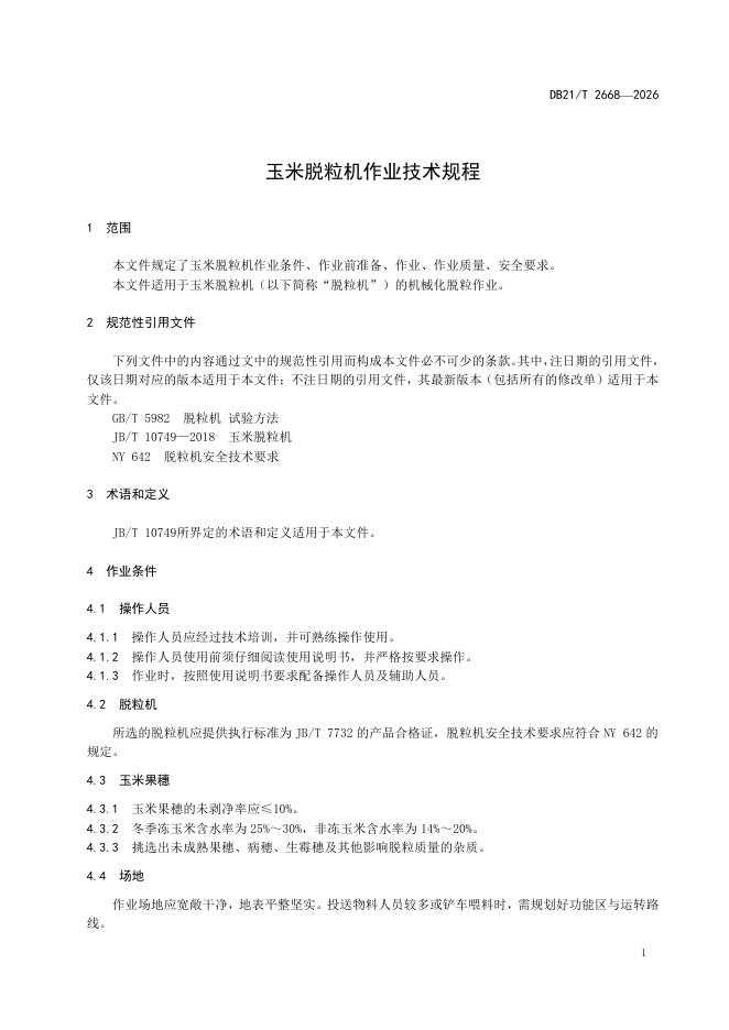 DB21/T 2668-2026 玉米脱粒机作业技术规程