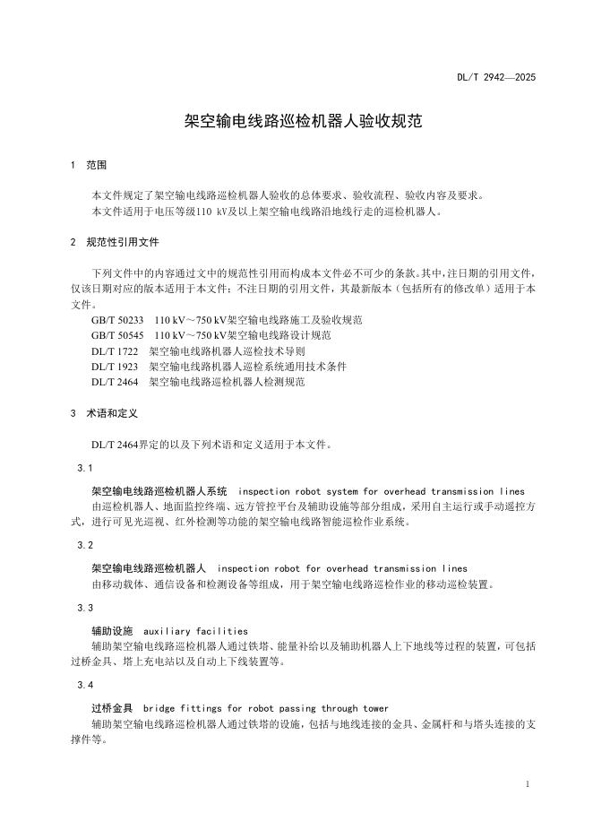 DL/T 2942-2025 架空输电线路巡检机器人验收规范