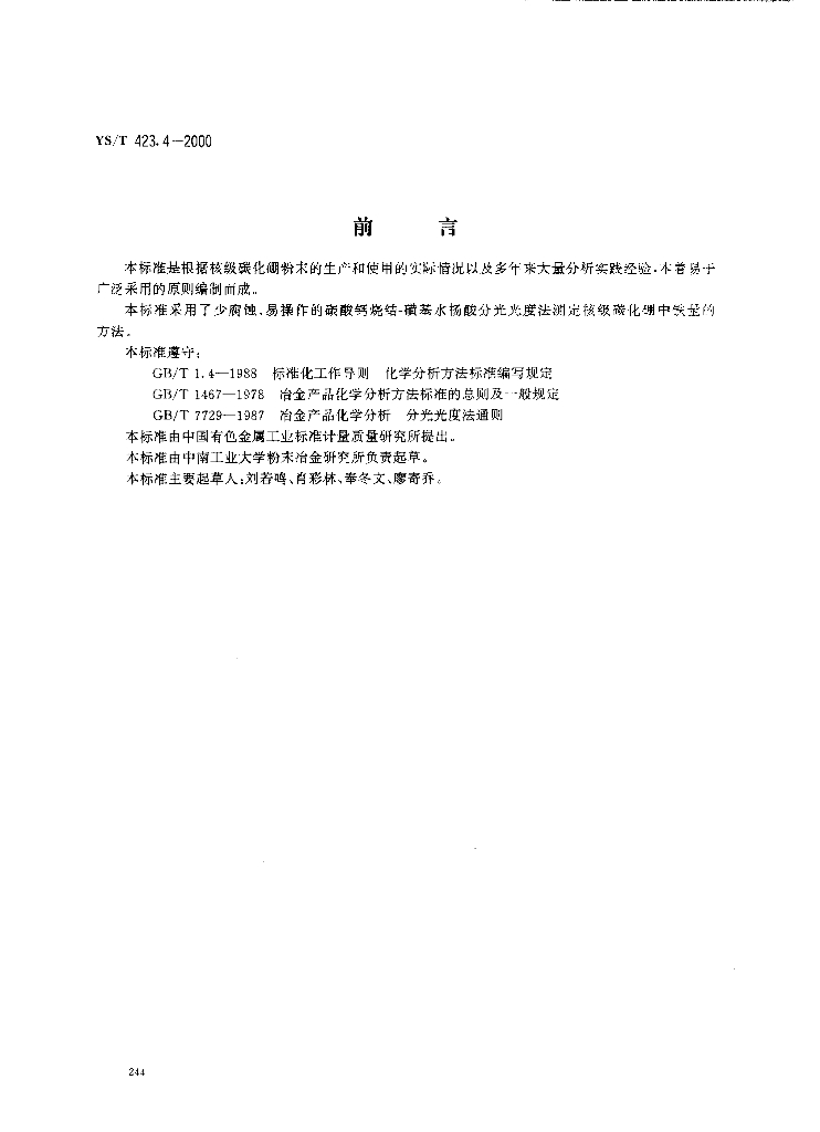 YS/T 423.4-2000 核级碳化硼粉末化学分析方法铁量的测定