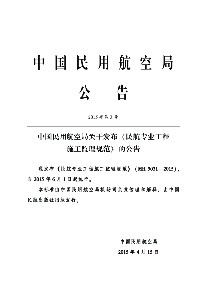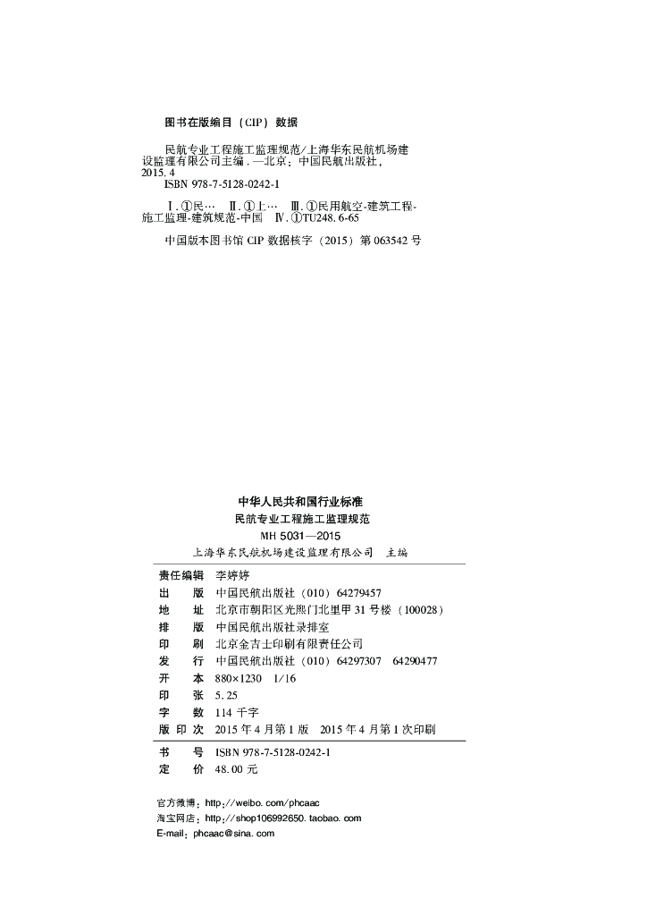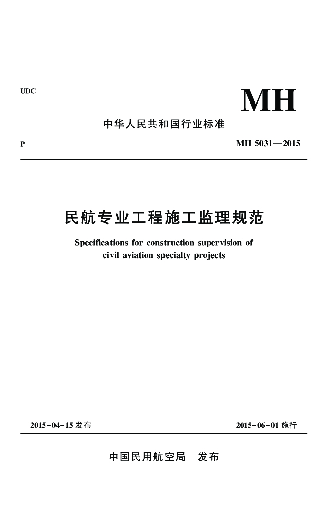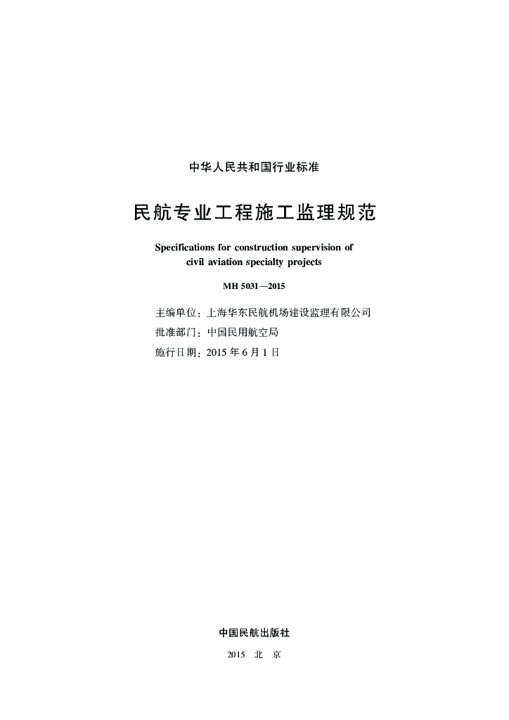 MH 5031-2015 民航专业工程施工监理规范