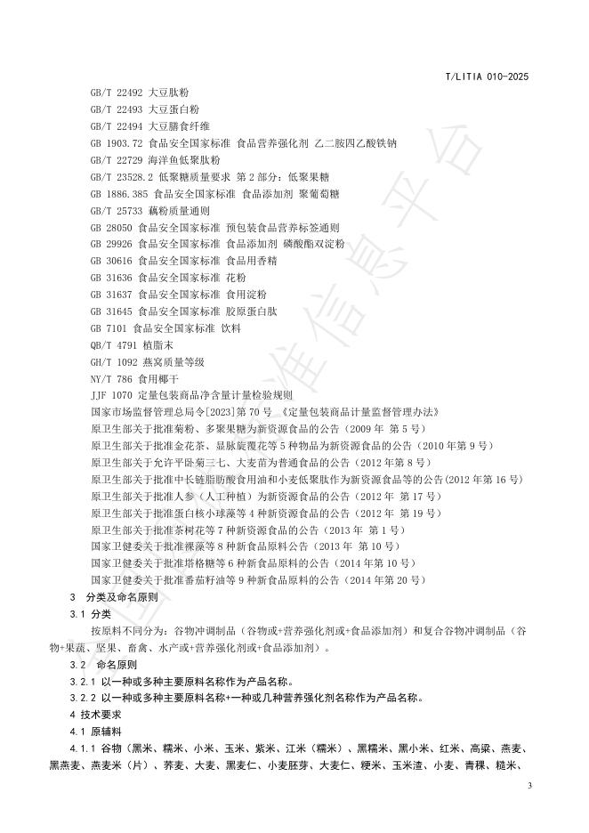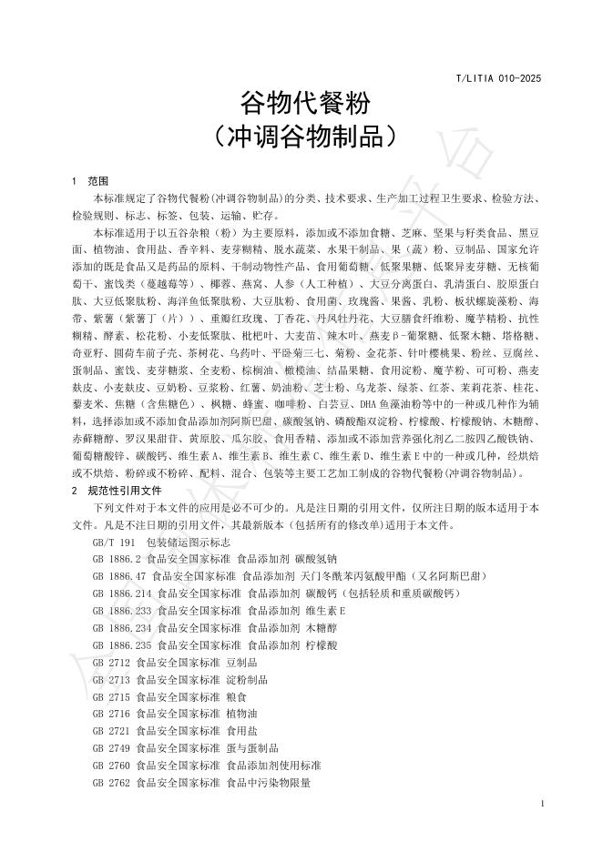 T/LITIA 010-2025 谷物代餐粉 (冲调谷物制品)