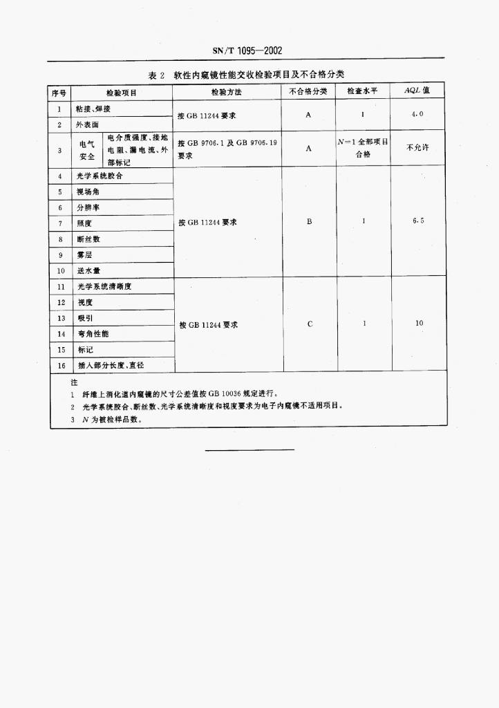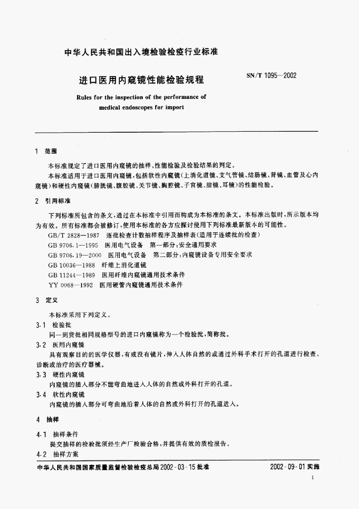 SN/T 1095-2002 进口医用内窥镜性能检验规程