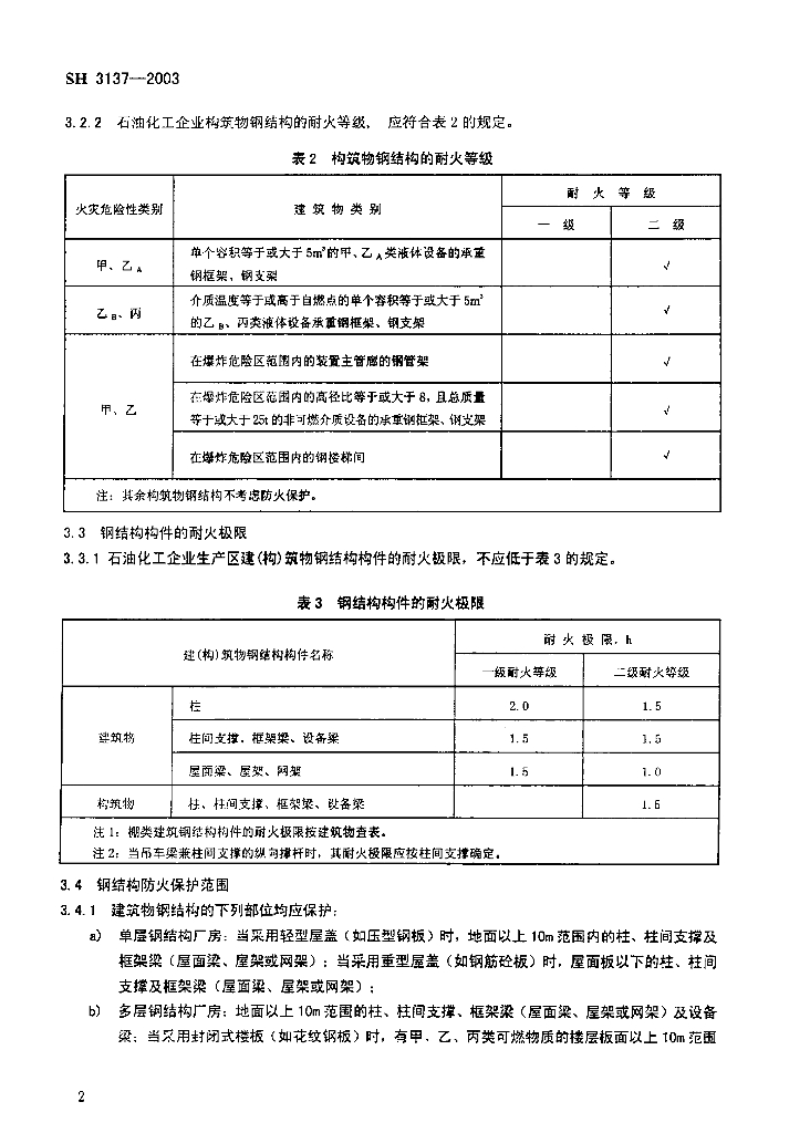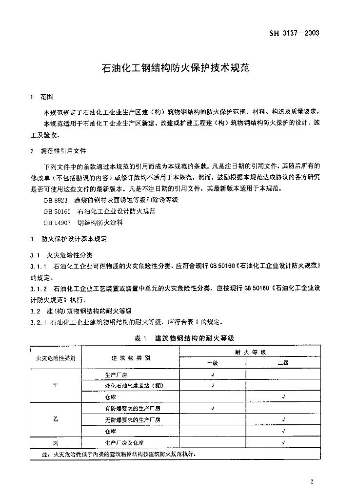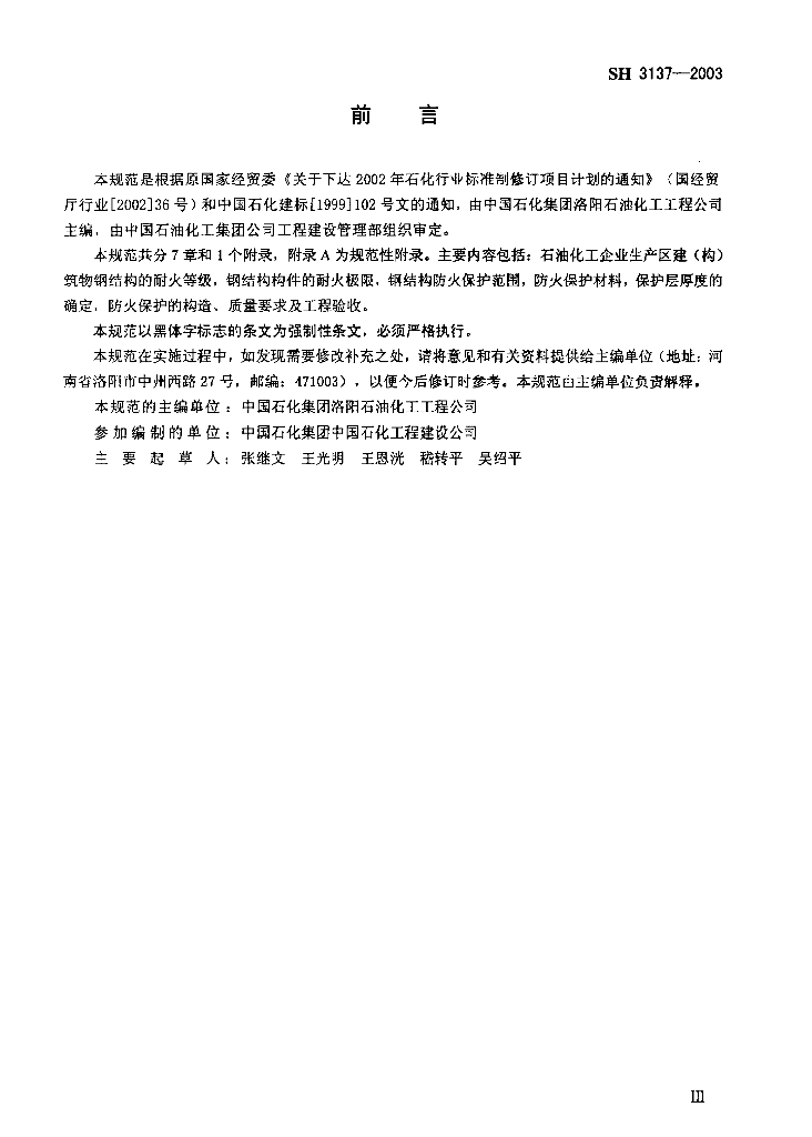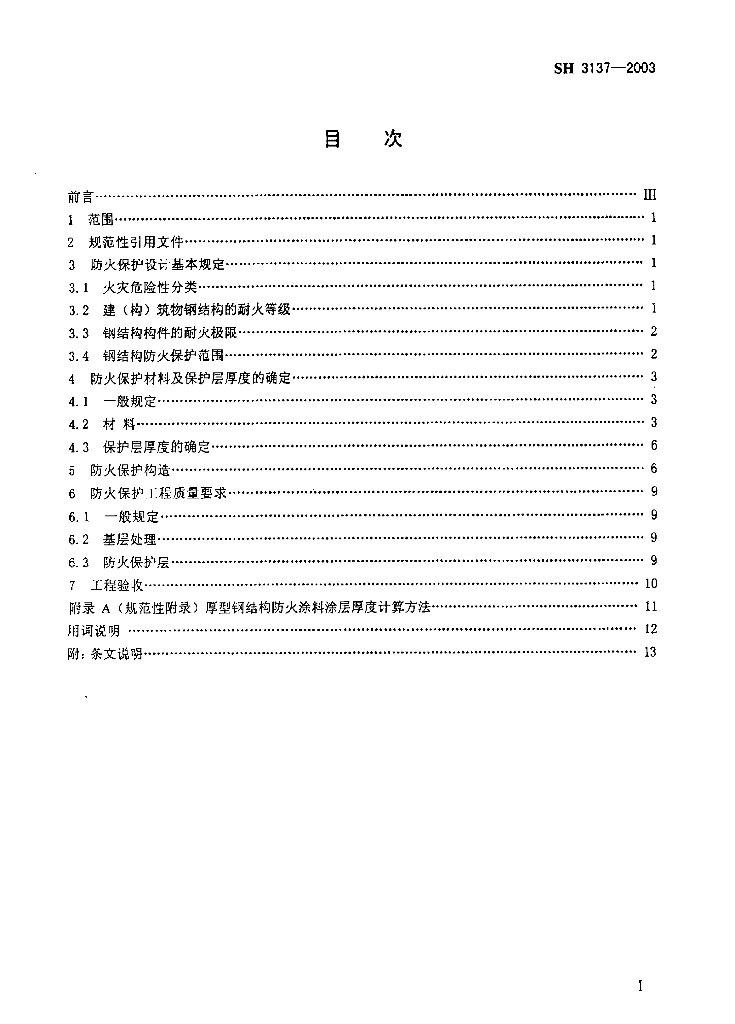 SH 3137-2003 石油化工钢结构防火保护技术规范