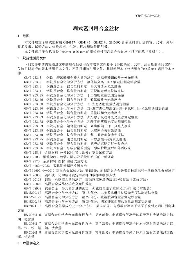 YB/T 6202-2024 刷式密封用合金丝材
