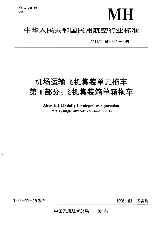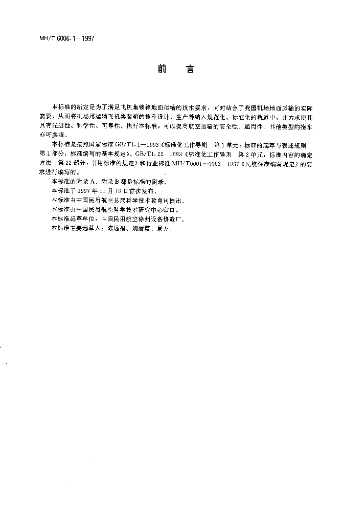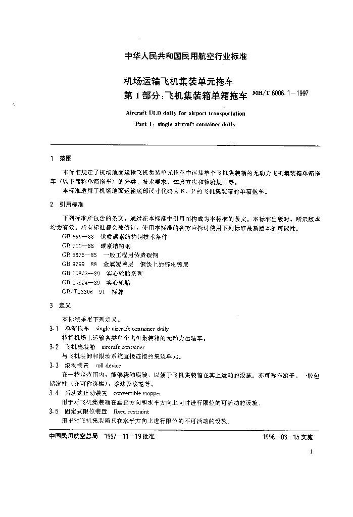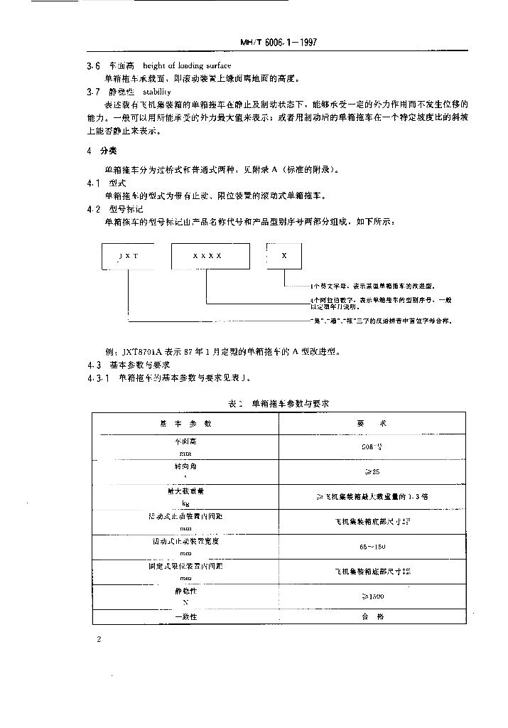 MH/T 6006.1-1997 机场运输飞机集装单元拖车 第1部分:飞机集装箱单箱拖车