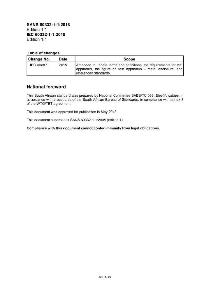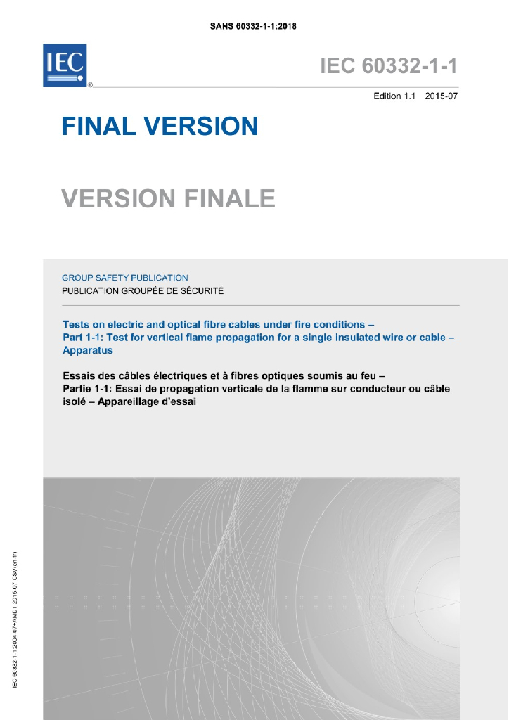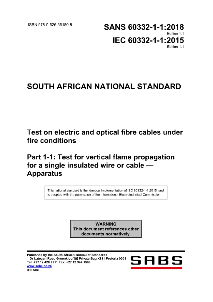 SANS 60332-1-1:2018 电缆和光缆在火焰条件下的燃烧试验 第1-1部分 单根绝缘电线电缆火焰垂直蔓延试验 试验装置
