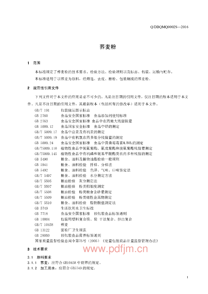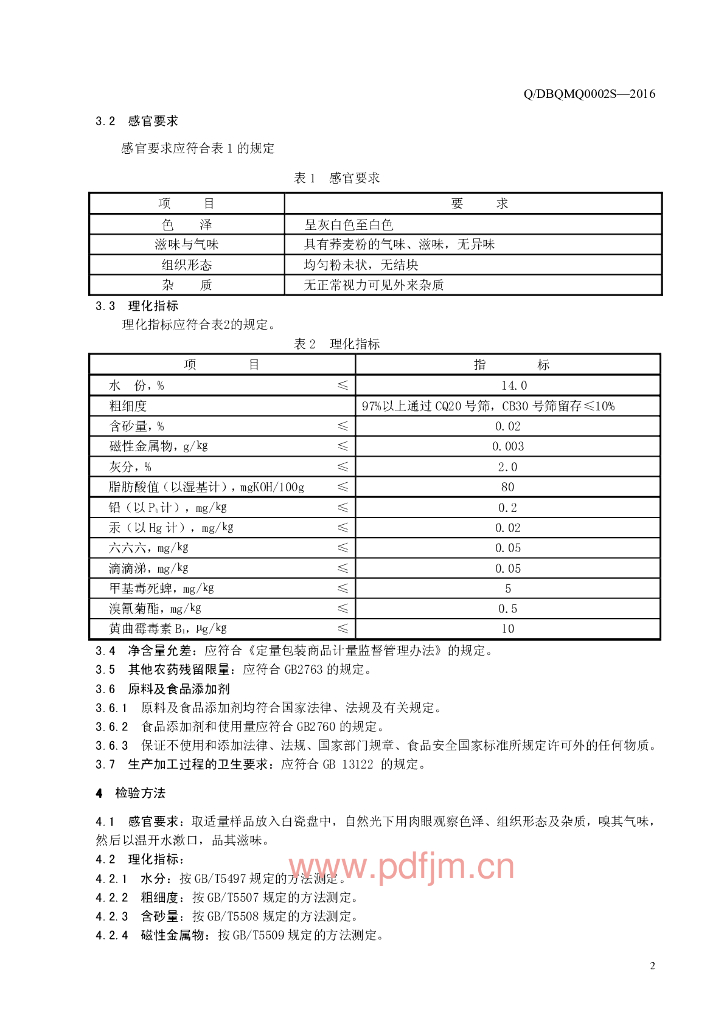 Q/DBQMQ 0002S-2016 定边县贺圈镇荞麦情加工养殖专业合作 荞麦粉