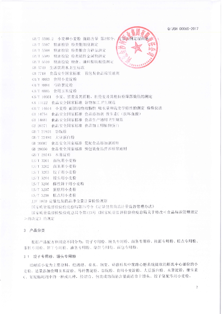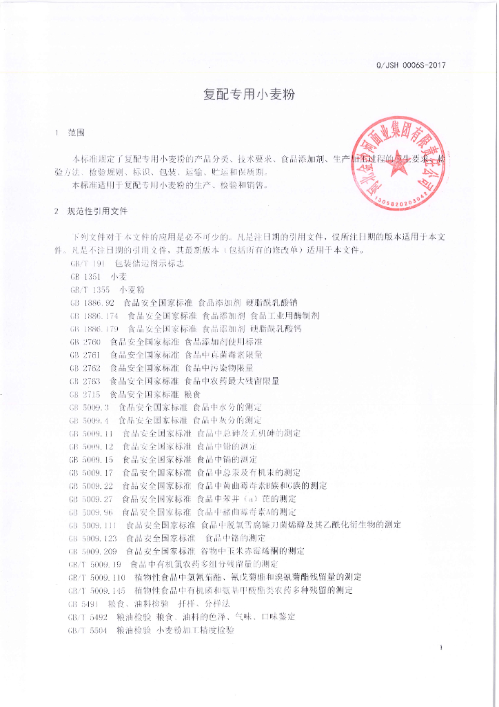 Q/JSH 0006S-2017 复配专用小麦粉