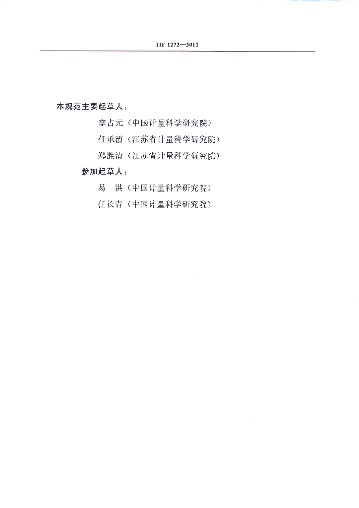 李占元(中国计量科学研究院)、任承霞(江苏省计量科学研究院)、郑胜清(江苏省计量科学研究院)、易洪(中国计量科学研究院)、任长青(中国计量科学研究院)