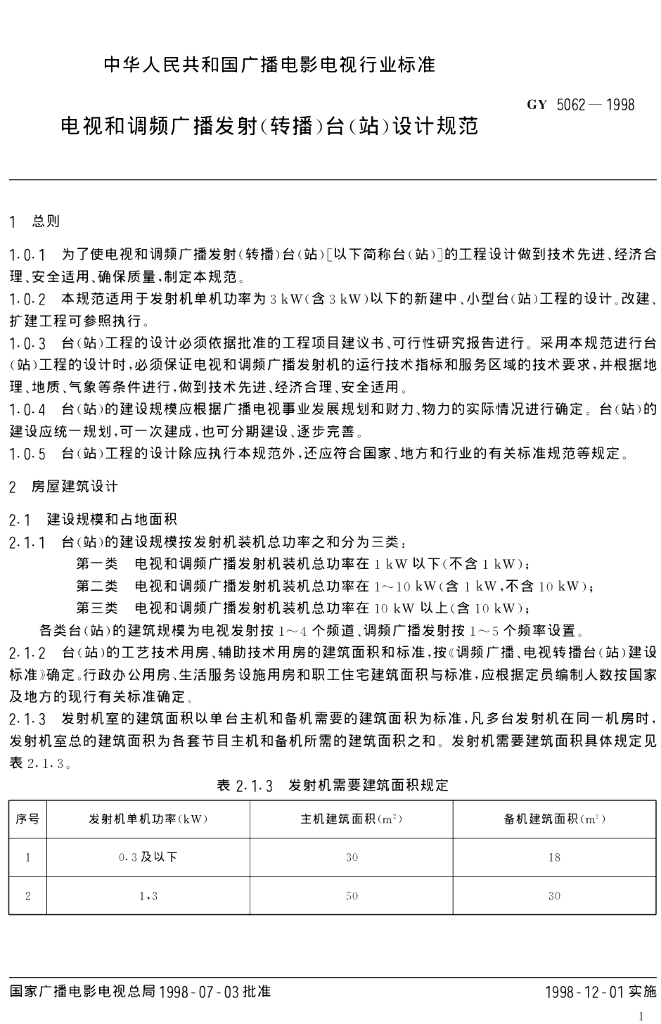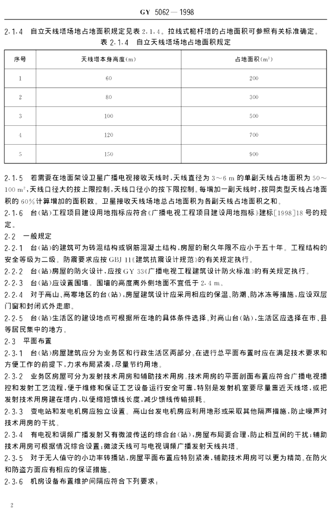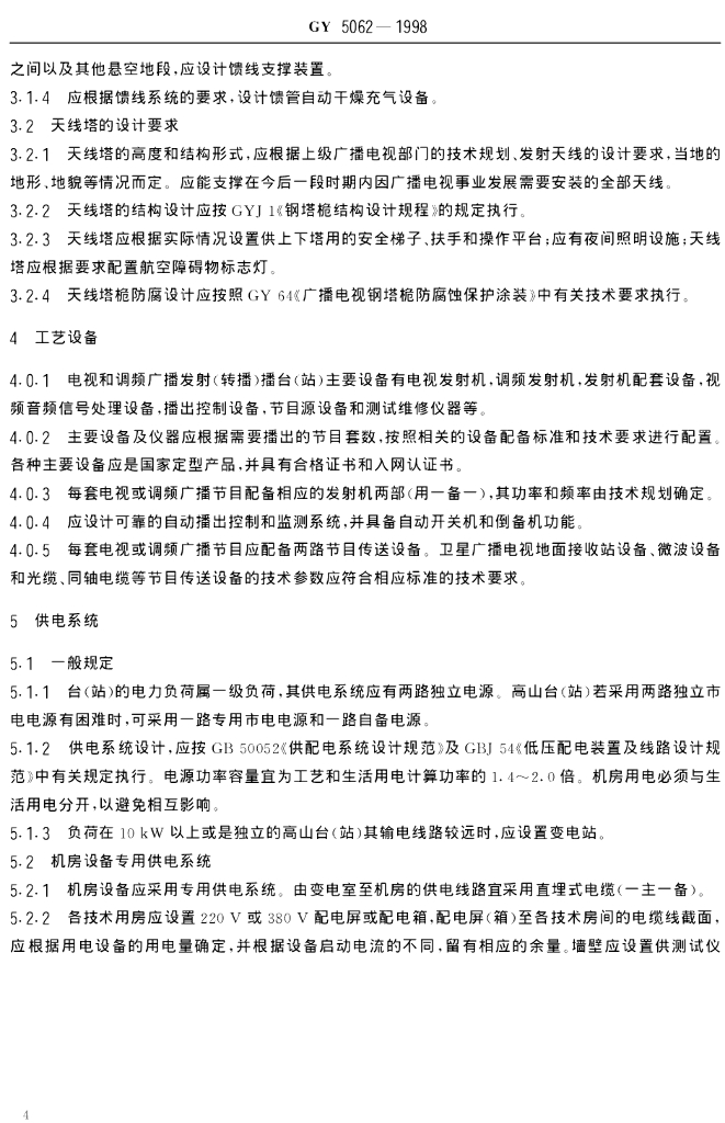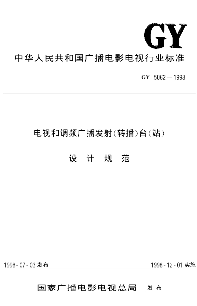 GY 5062-1998 电视和调频广播发射(转播)台(站)设计规范