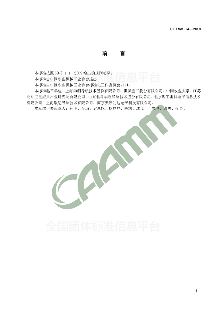 上海华测导航技术股份有限公司、雷沃重工股份有限公司、中国农业大学、江苏北斗卫星应用产业研究院有限公司、山东北斗华宸导航技术股份有限公司、北京理工雷科电子信息技术有限公司、上海联适导航技术有限公司、南京天辰礼达电子科技有限公司