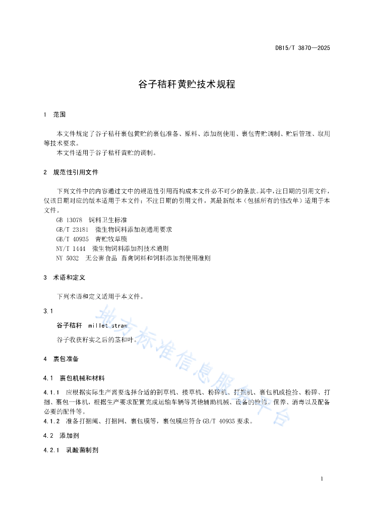 DB15/T 3870-2025 谷子秸秆黄贮技术规程
