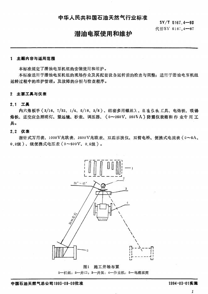 SY/T 5167.4-1993 潜油电泵使用和维护