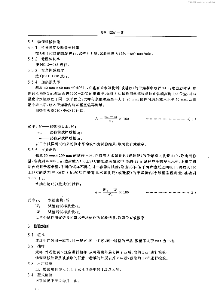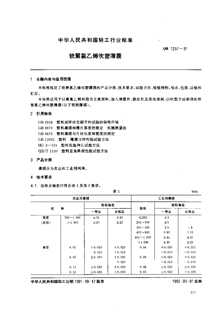 QB 1257-1991 软聚氯乙烯吹塑薄膜