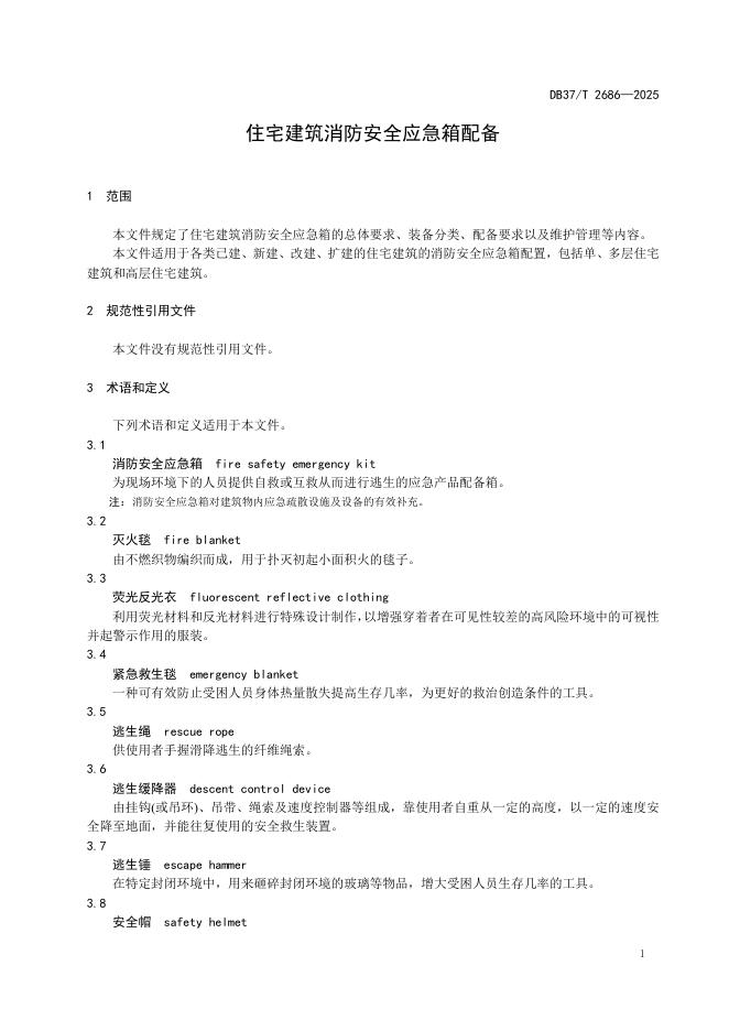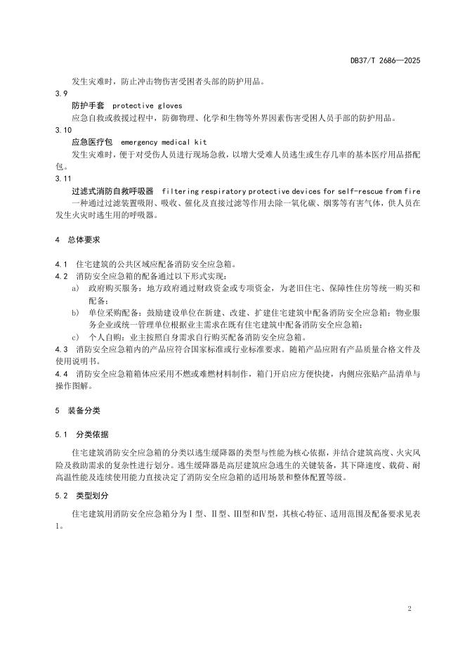 DB37/T 2686-2025 住宅建筑消防安全应急箱配备