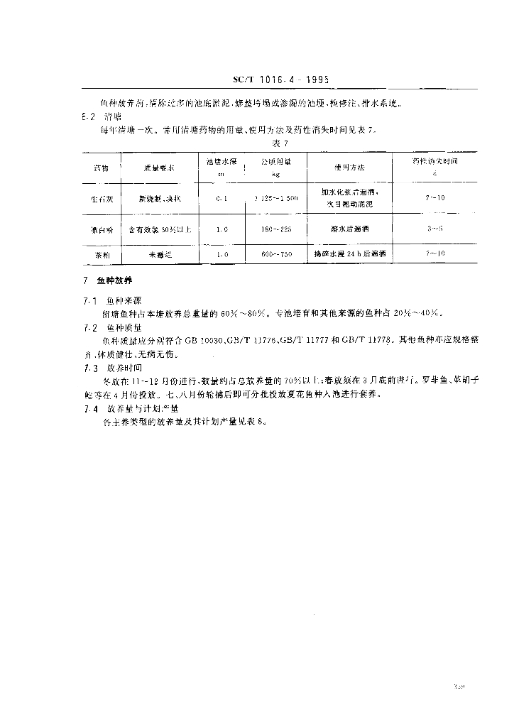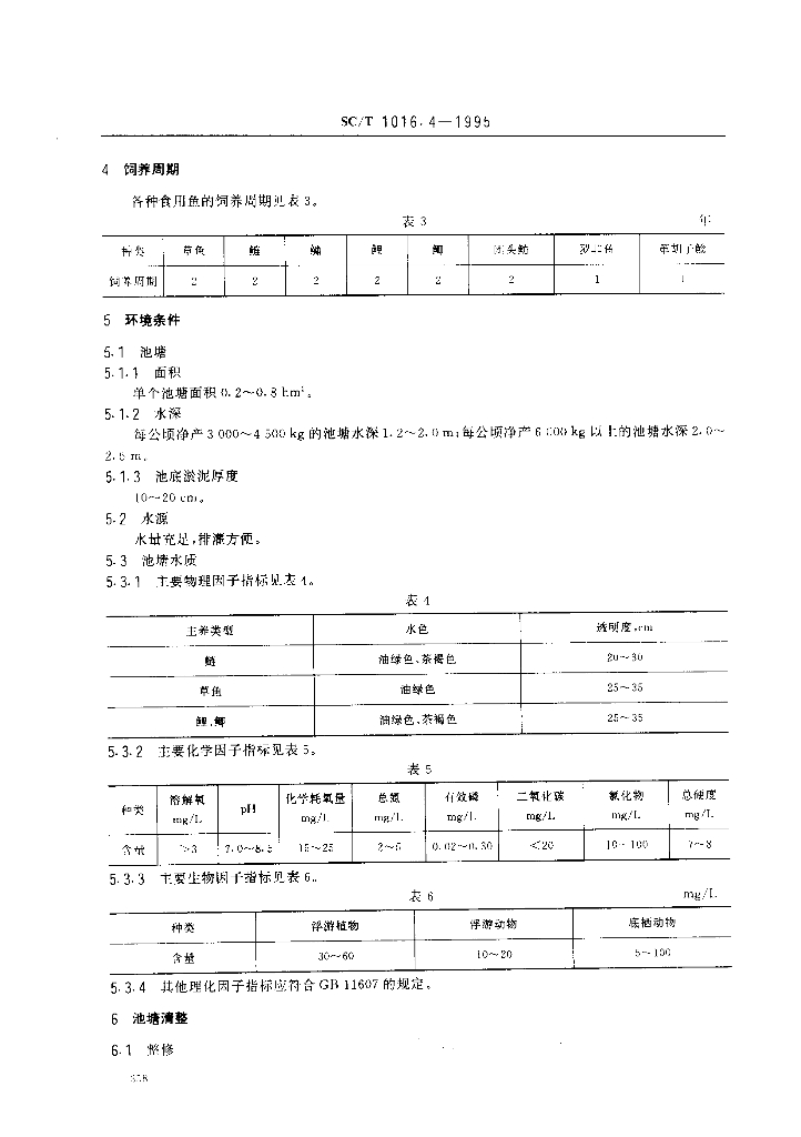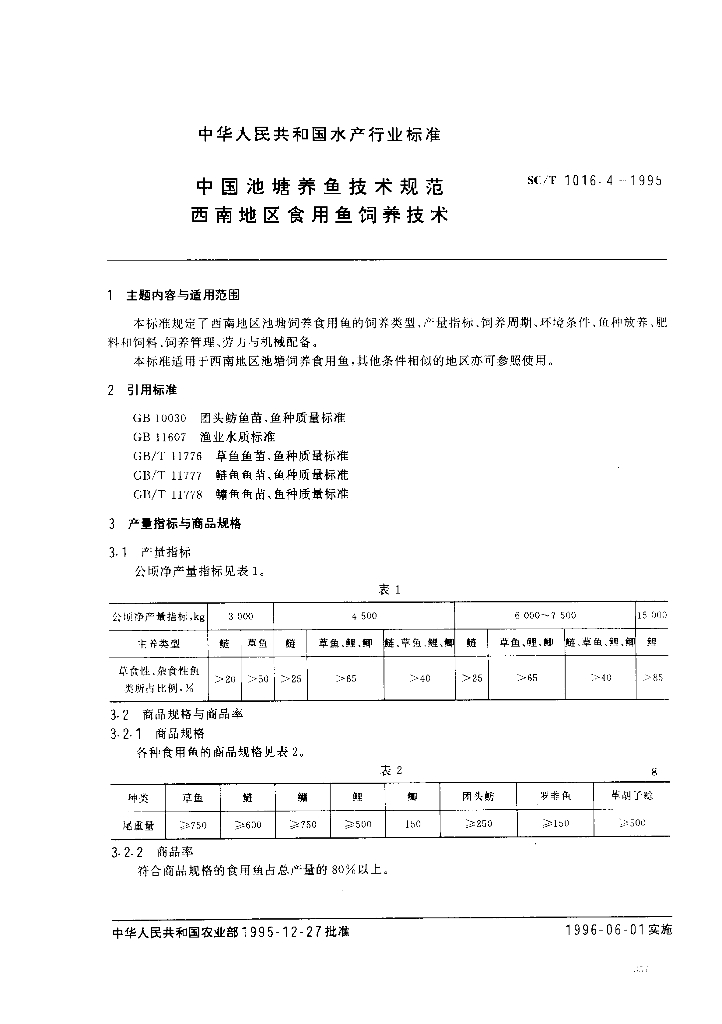 SC/T 1016.4-1995 中国池塘养鱼技术规范 西南地区食用鱼饲养技术