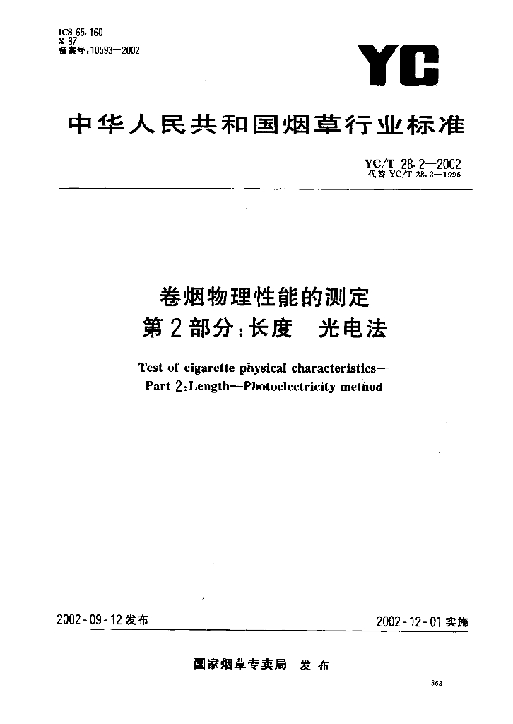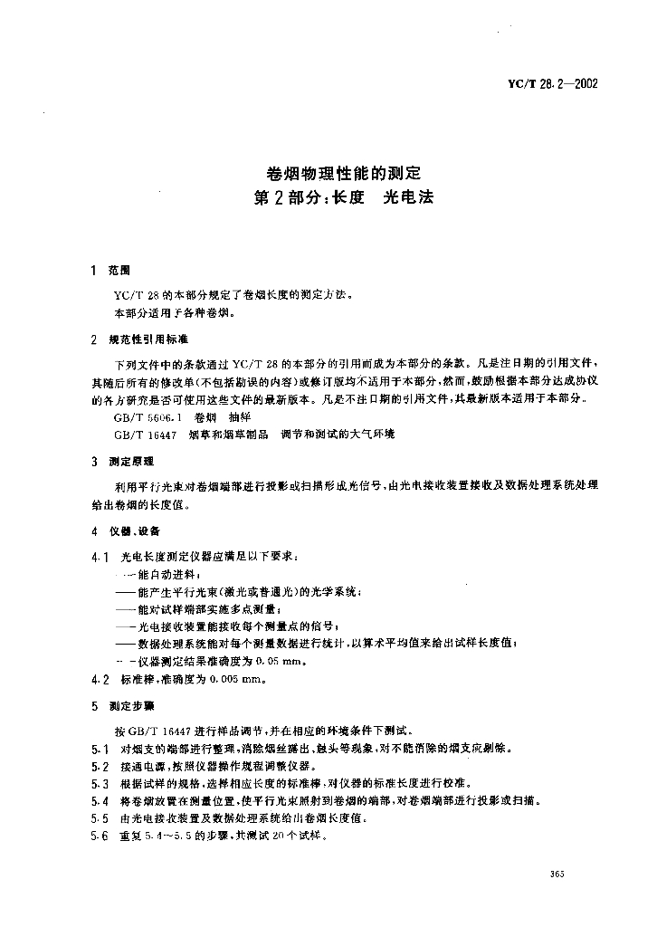 YC/T 28.2-2002 卷烟物理性能的测定 第2部分:长度 光电法