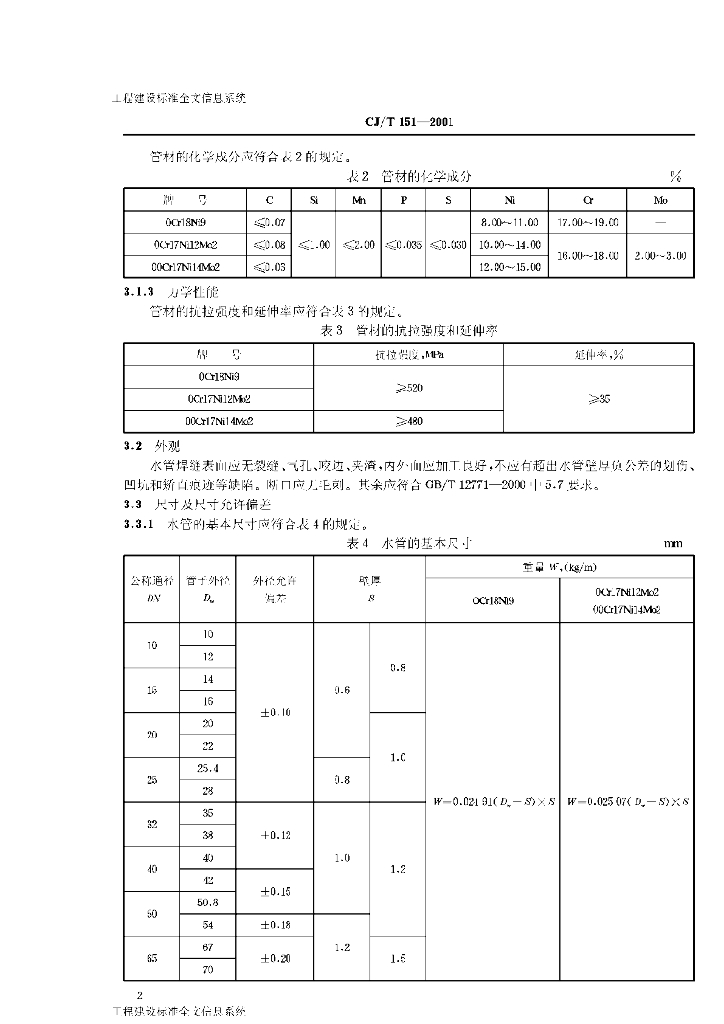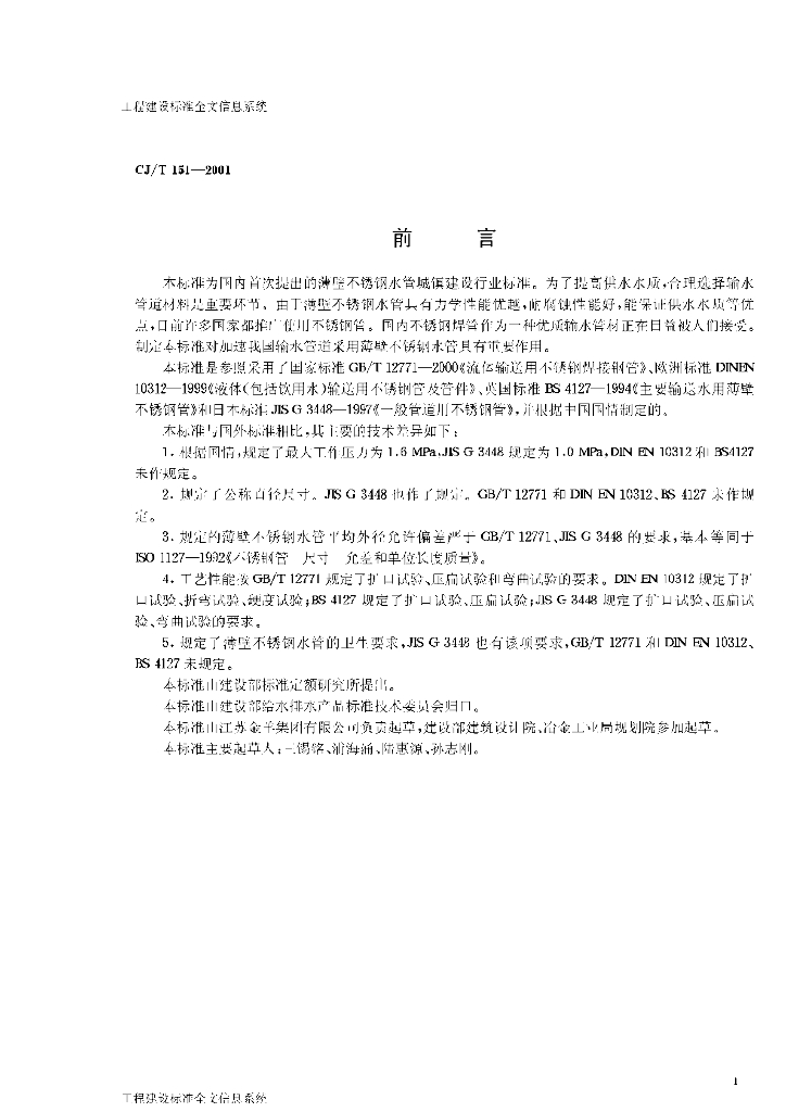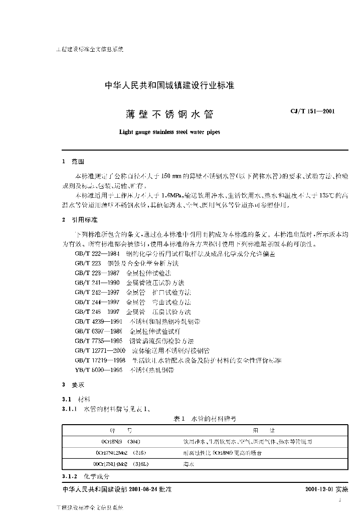 CJ/T 151-2001 薄壁不锈钢水管