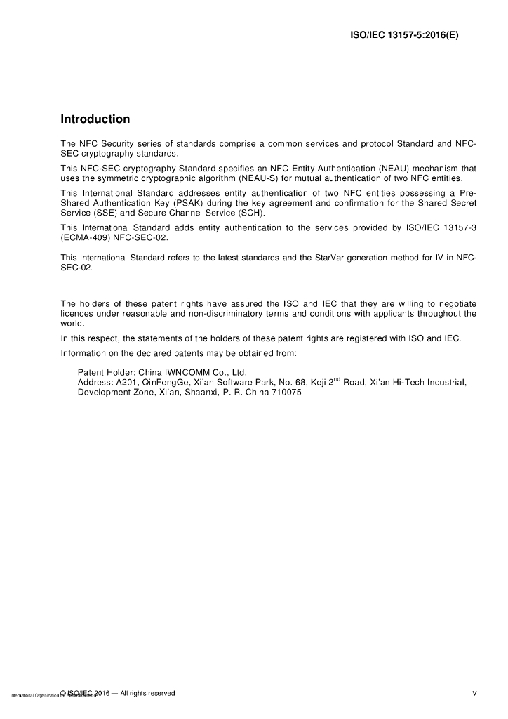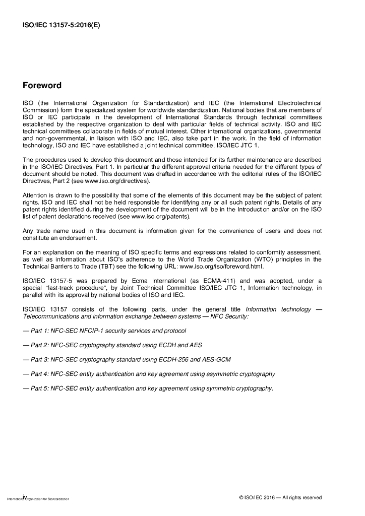 ISO/IEC 13157-5-2016 信息技术 系统间远程通信和信息交换 NFC安全 第5部分:使用对称加密的NFC-SEC实体认证和密钥协议