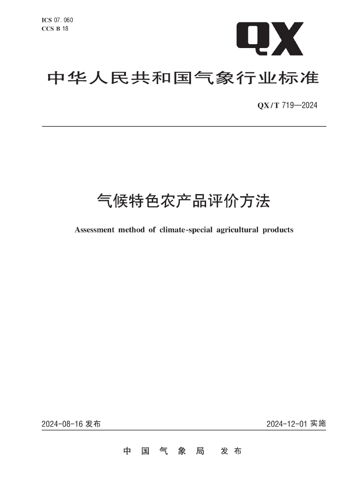 QX/T 719-2024 气候特色农产品评价方法