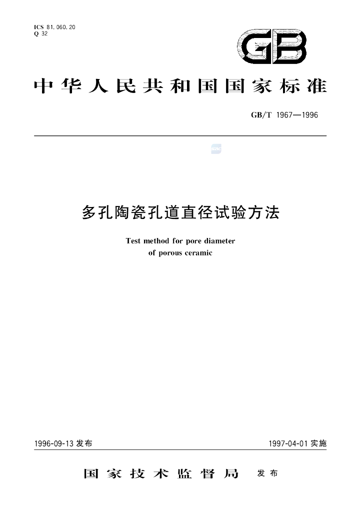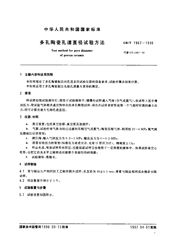 GB/T 1967-1996 多孔陶瓷孔道直径试验方法