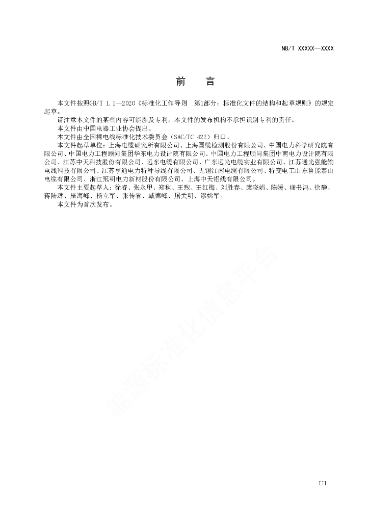 上海电缆研究所有限公司、上海国缆检测股份有限公司、中国电力科学研究院有限公司、中国电力工程顾问集团华东电力设计院有限公司、中国电力工程顾问集团中南电力设计院有限公司、江苏中天科技股份有限公司、远东电缆有限公司、广东远光电缆实业有限公司、江苏通光强能输电线科技有限公司、江苏亨通电力特种导线有限公司、无锡江南电缆有限公司、特变电工山东鲁能泰山电缆有限公司、浙江冠明电力新材股份有限公司、上海中天铝线有限公司