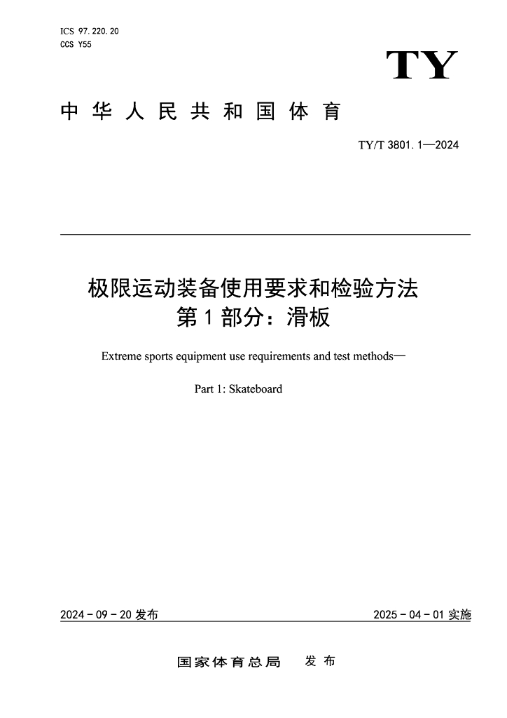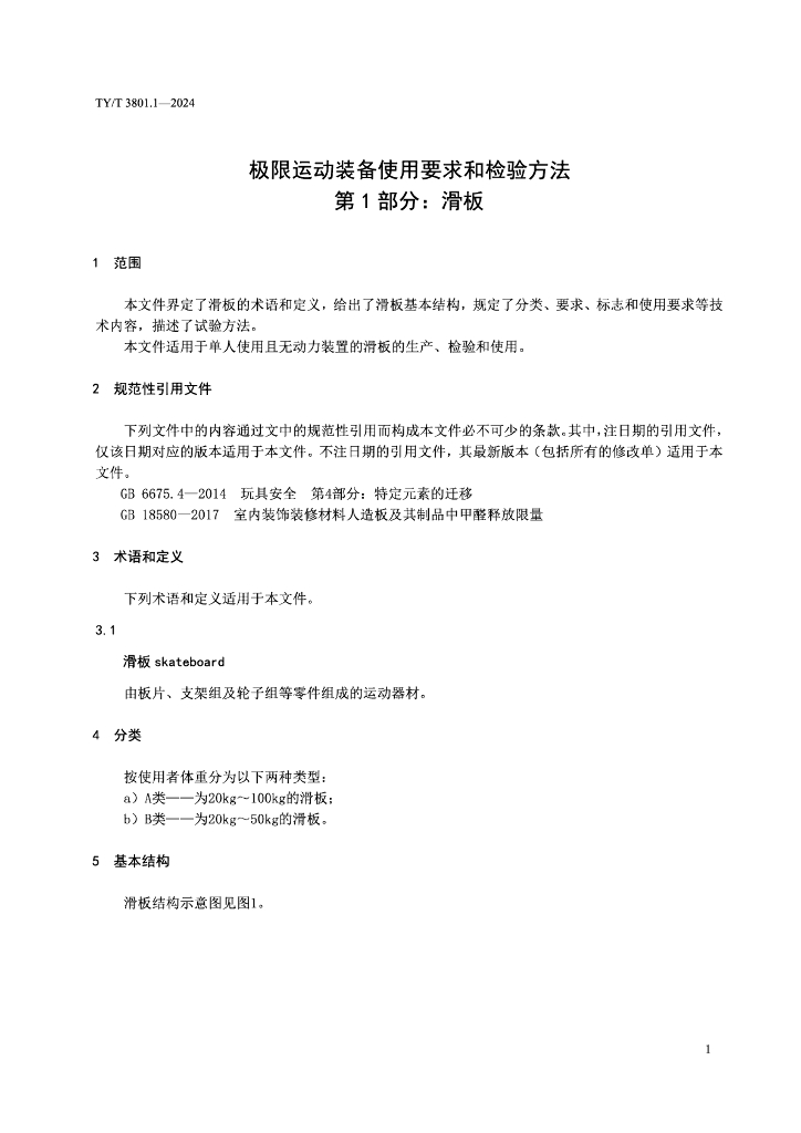 TY/T 3801.1-2024 极限运动装备使用要求和检验方法 第1部分:滑板