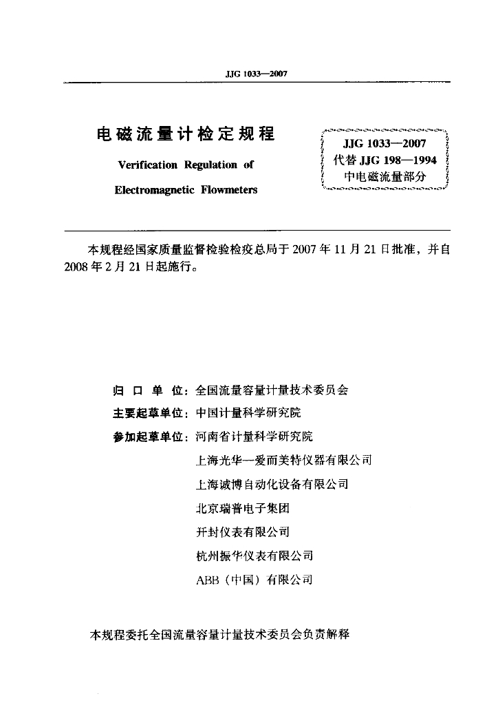 中国计量科学研究院、河南省计量科学研究院、上海光华一爱而美特仪器有限公司、上海诚博自动化设备有限公司、北京瑞普电子集团、开封仪表有限公司、杭州振华仪表有限公司、ABB(中国)有限公司