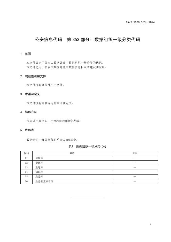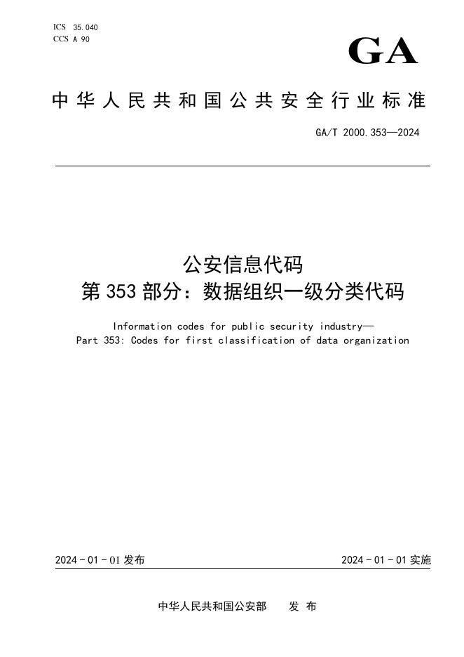 GA/T 2000.353-2024 公安信息代码 第353部分:数据组织一级分类代码