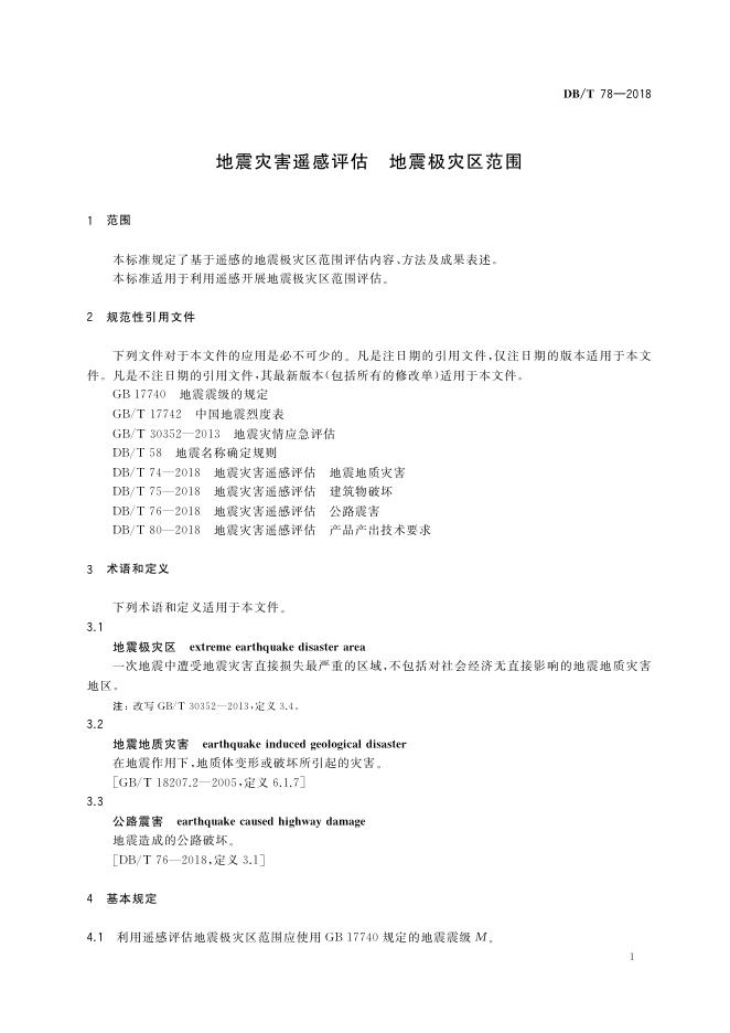 DB/T 78-2018 地震灾害遥感评估 地震极灾区范围