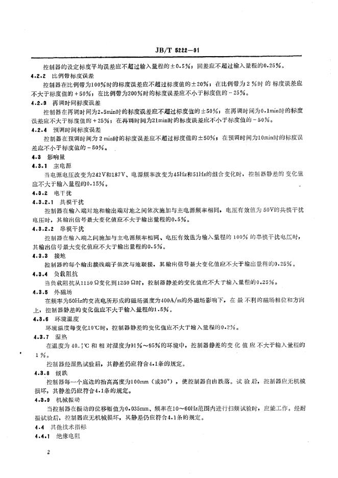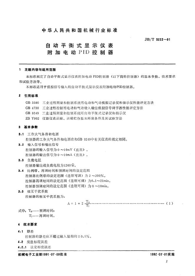 JB/T 5222-1991 自动平衡式显示仪表附加电动PID控制器