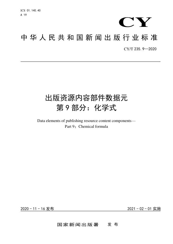 CY/T 235.9-2020 出版资源内容部件数据元 第9部分:化学式
