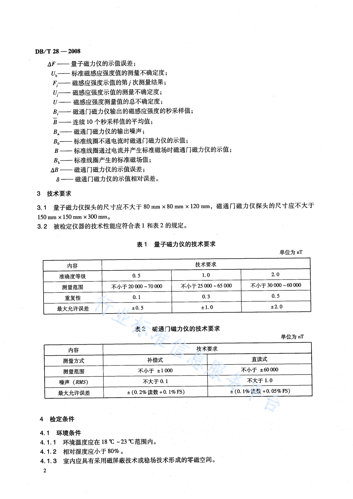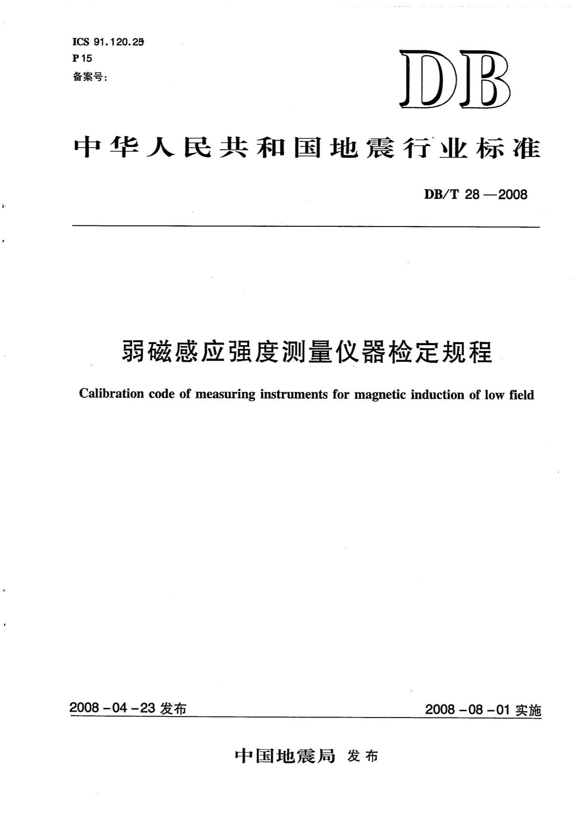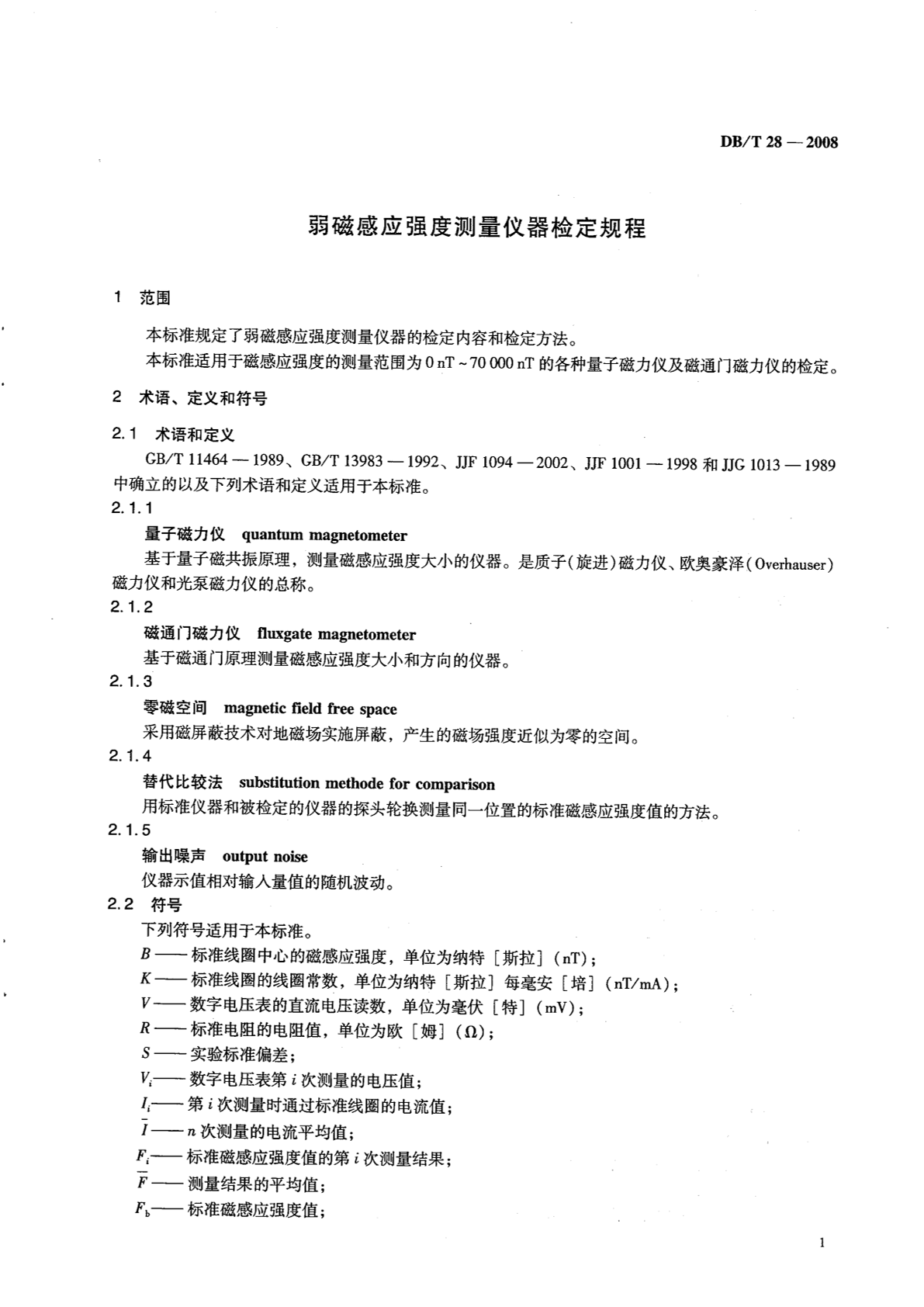 DB/T 28-2008 弱磁感应强度测量仪器检定规程