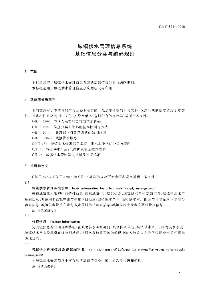 CJ/T 541-2019 城镇供水管理信息系统基础信息分类与编码规则