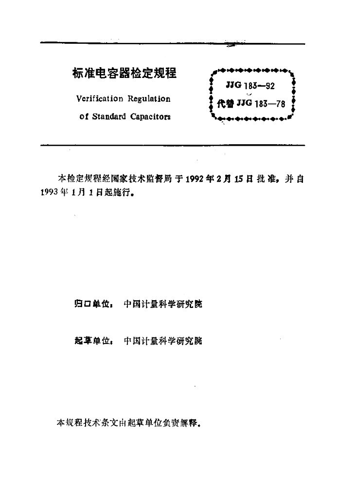 JJG 183-1992 标准电容器检定规程