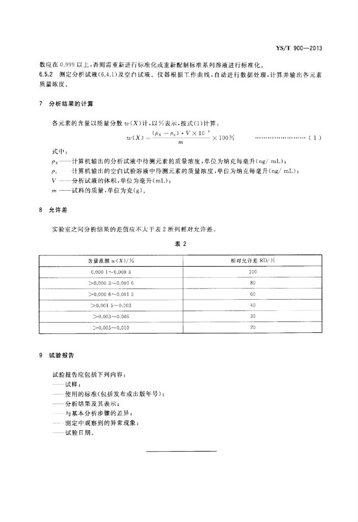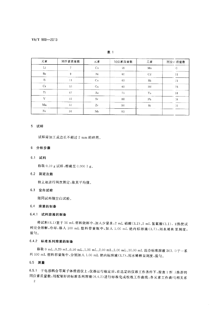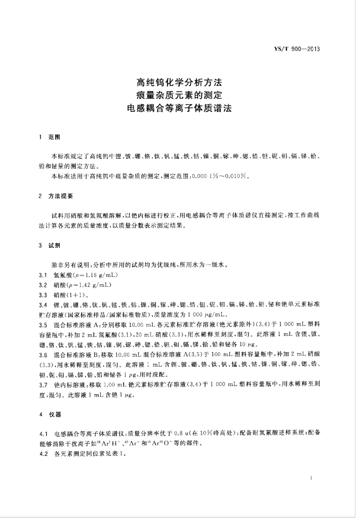 YS/T 900-2013 高纯钨化学分析方法痕量杂质元素的测定电感耦合等离子体质谱法