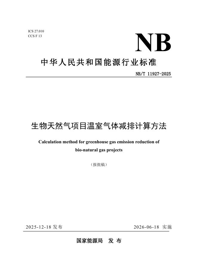 NB/T 11927-2025 生物天然气项目温室气体减排计算方法