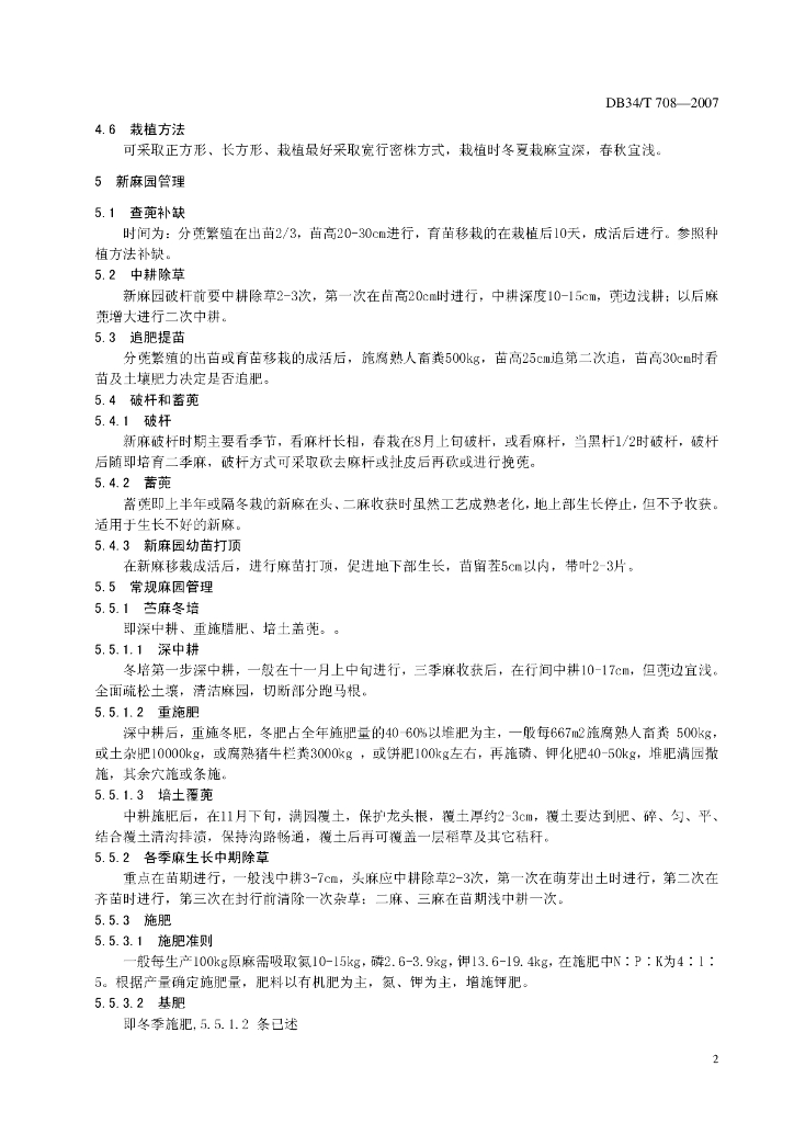 DB34/T 708-2007 苎麻生产技术规程