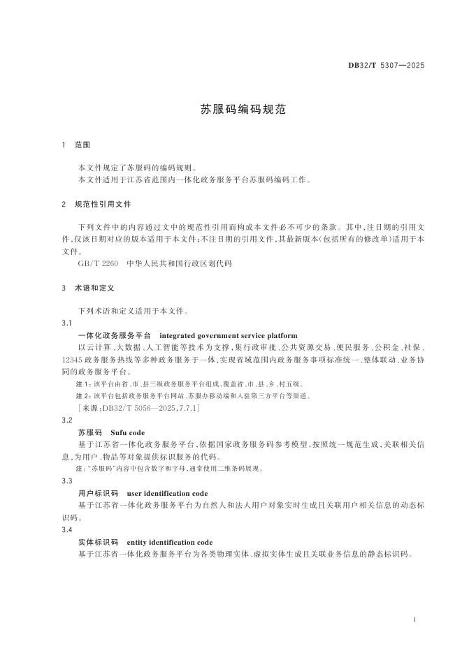 DB32/T 5307-2025 苏服码编码规范