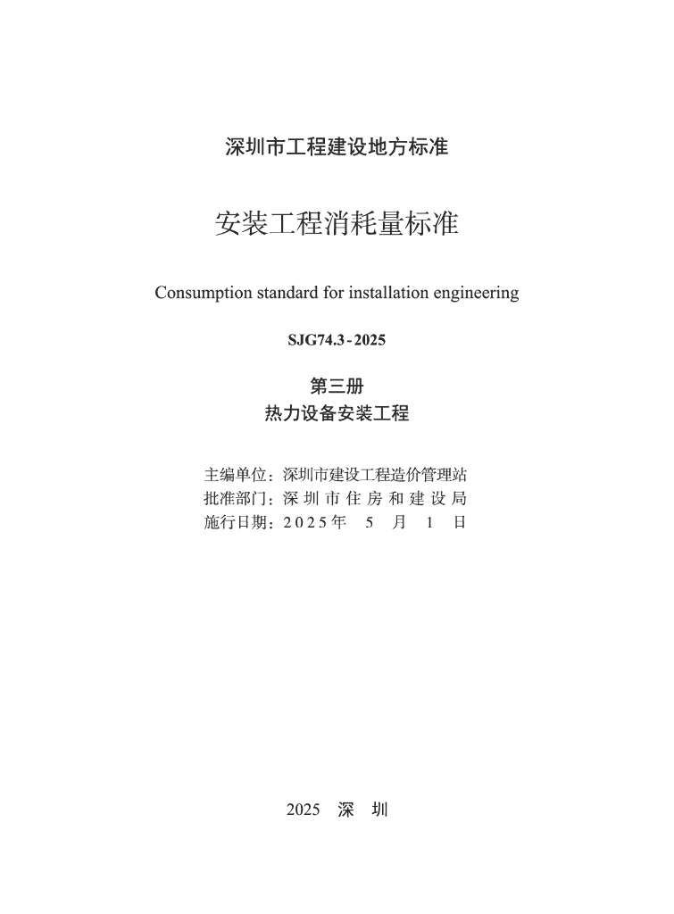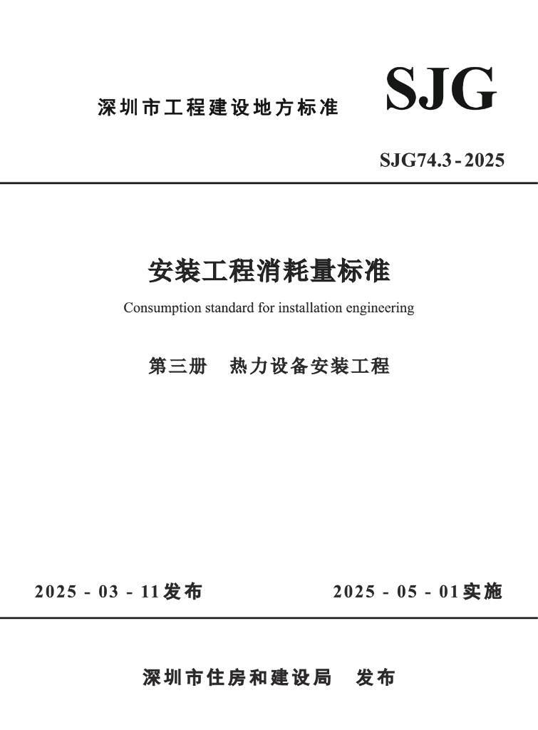 SJG 74.3-2025 深圳市安装工程消耗量标准 第三册 热力设备安装工程