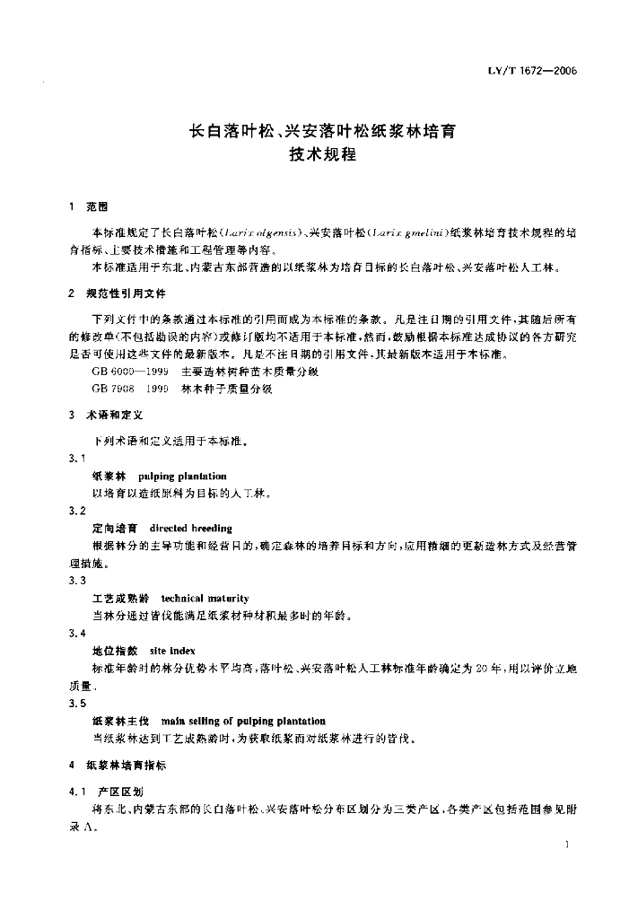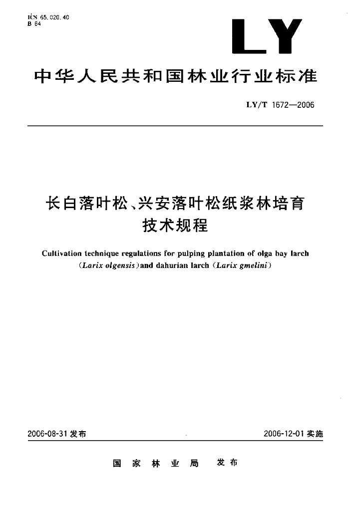 LY/T 1672-2006 长白落叶松、兴安落叶松纸浆林培育技术规程