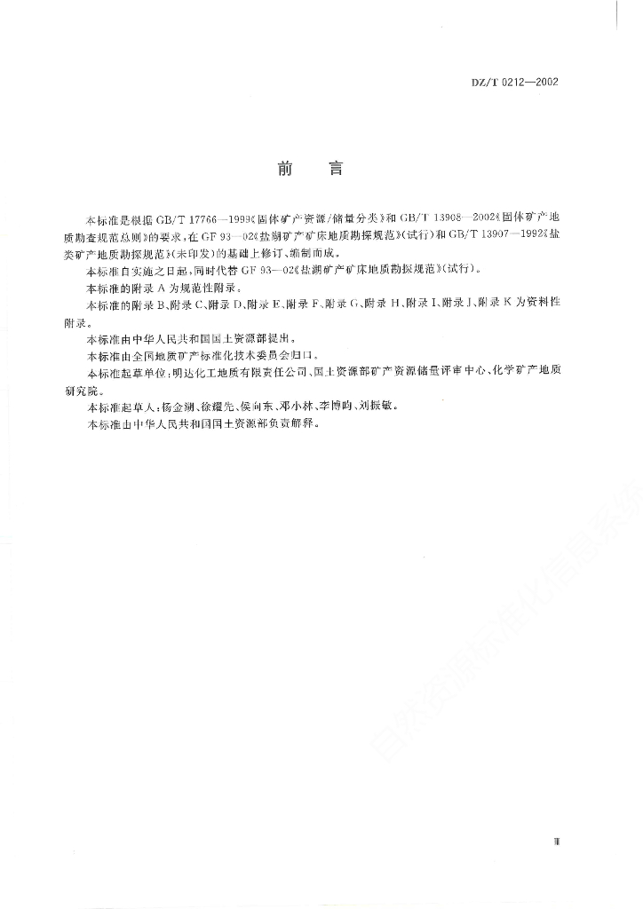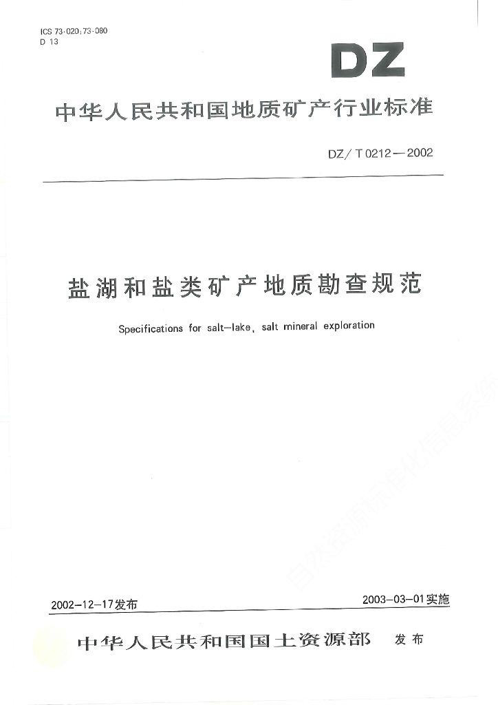 DZ/T 0212-2002 盐湖和盐类矿产地质勘查规范