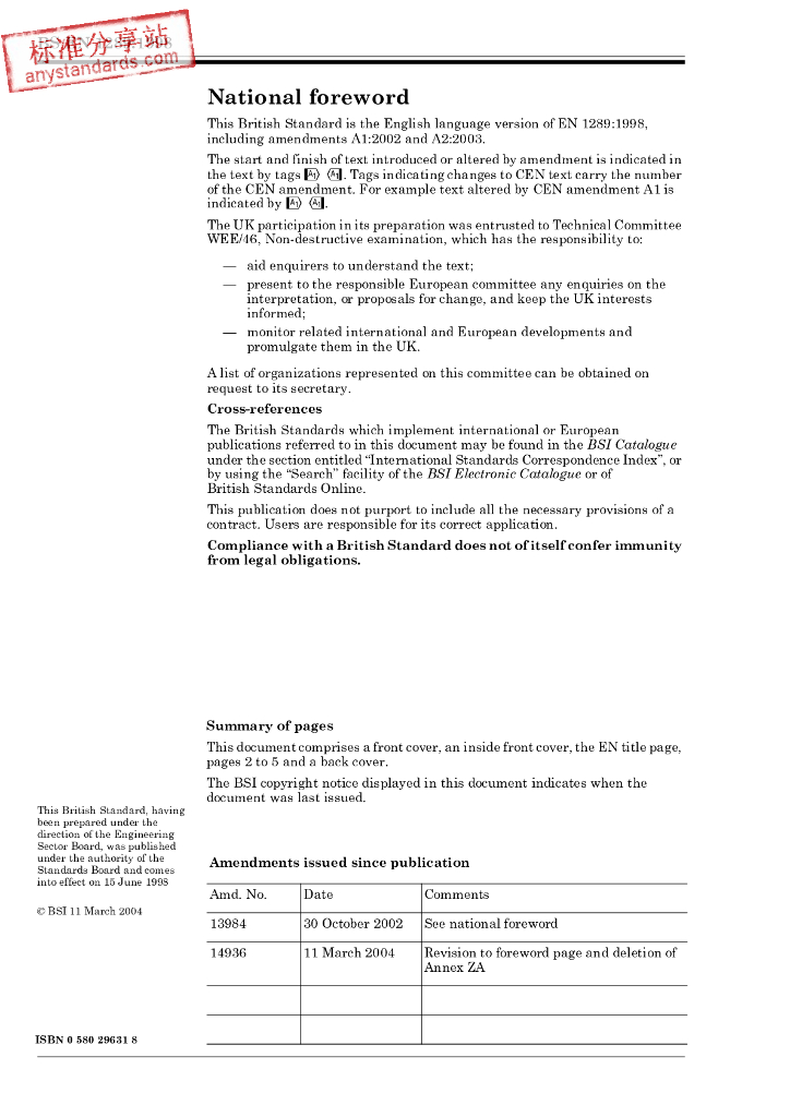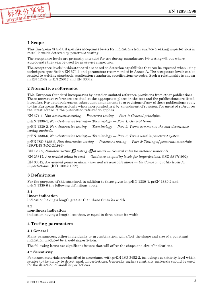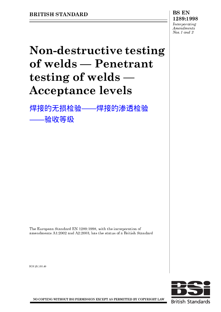 BS EN 1289-1998 焊接的无损检验.焊接的超声波探检验.验收等级