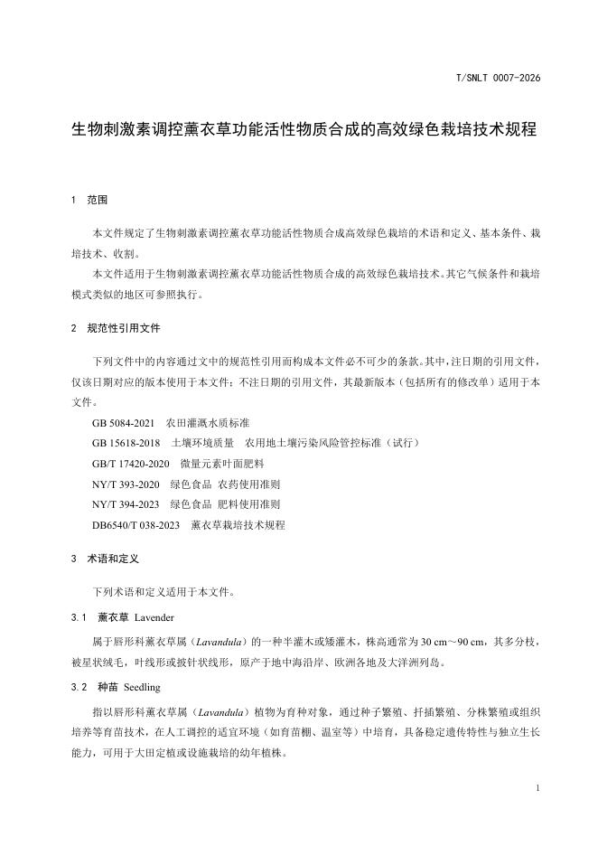 T/SNLT 0007-2026 生物刺激素调控薰衣草功能活性物质合成的高效绿色栽培技术规程
