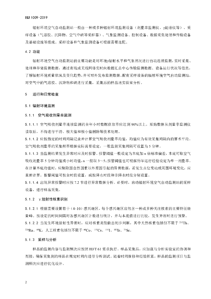 HJ 1009-2019 辐射环境空气自动监测站运行技术规范